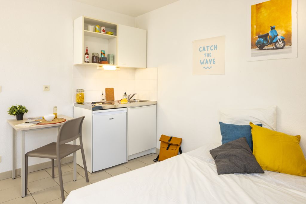 Close to campuses, well connected, with services (laundry, bike parking, etc.) and furnished accommodation
