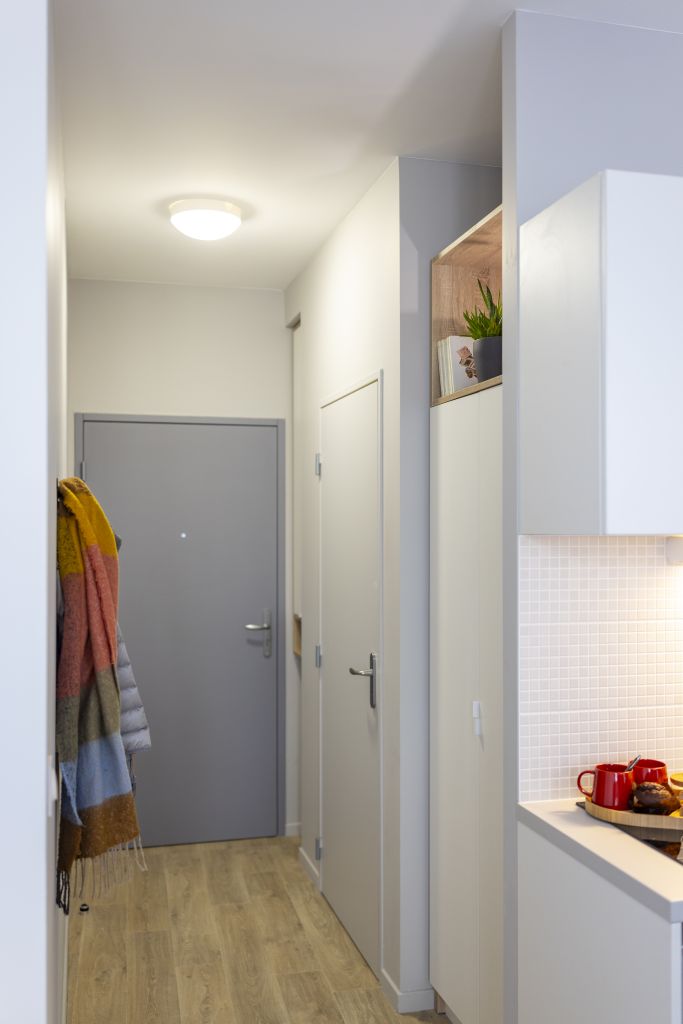 La résidence étudiante est sécurisée et met à disposition 70 logements (T1, T2 et T3) meublés : espace cuisine (avec évier, plaques électriques et réfrigérateur) et salle d'eau avec WC. Un ascenseur, une laverie et deux locaux vélos sont à votre disposition dans les parties communues.